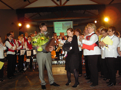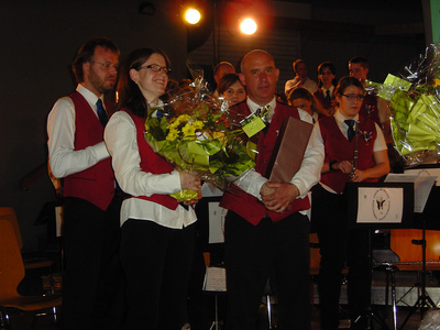Comme le Président Michel TACHON tient à le rappeler, la cohésion du groupe de l'Union Musicale est surtout assurée par les chefs de musique et de choeur. Aussi, ces derniers furent ils récomponsés par quelques présents en fin de concert.