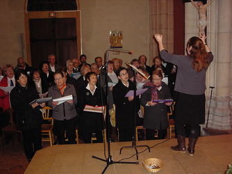 Une Assemblée nombreuse les accompagnait à la messe célébrée par le Père Guy OLLAGNIER. Plusieurs morceaux de musique furent interprétés pendant l'Office par l'Harmonie ainsi que des chants liturgiques par le Choeur de la Chorale.