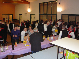 Après la messe, les membres de l'Union Musicale se sont retrouvés à la salle des fêtes de St Forgeux pour les agapes de circonstance.Un apéritif copieux fut servi dans un premier temps qui facilita les discussions entre tous.